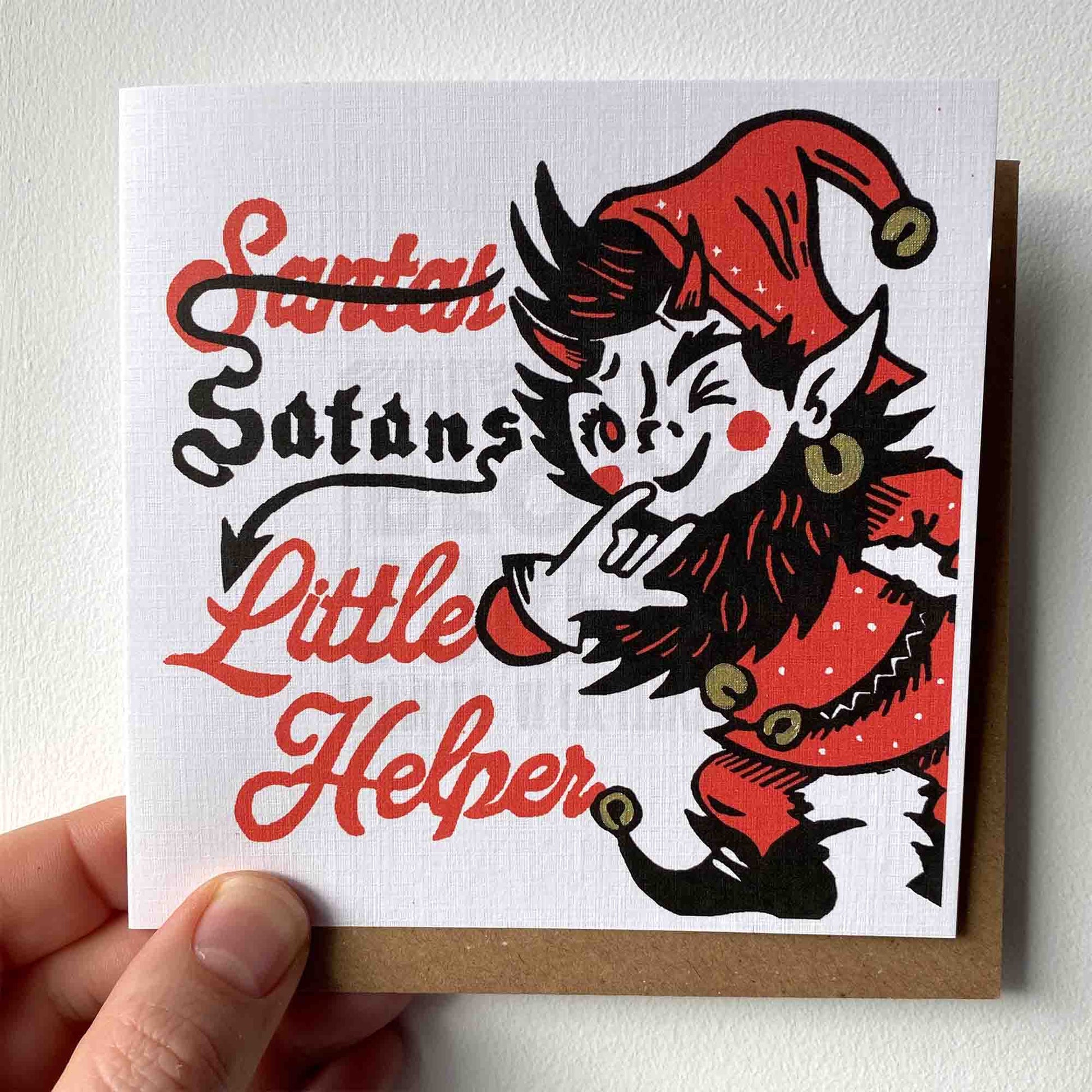 Santas (Satans) Little Helper - Festive Linocut Greetings Card